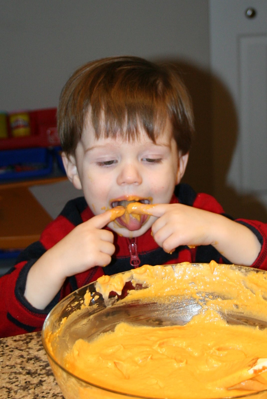 Our Thanksgiving celebration kicked off last night when Sam helped me cook up the pumpkin pie. He wasn't a big fan of the mixer (too loud!), but he LOVED the pie filling! Today was quiet, but nice. Sam and I napped while Steve slaved over our Thanksgiving feast, which was really delicious. Sam was pretty pumped about the spread, but refused to taste any of it with the exception of the ice cream that was served with the pie.